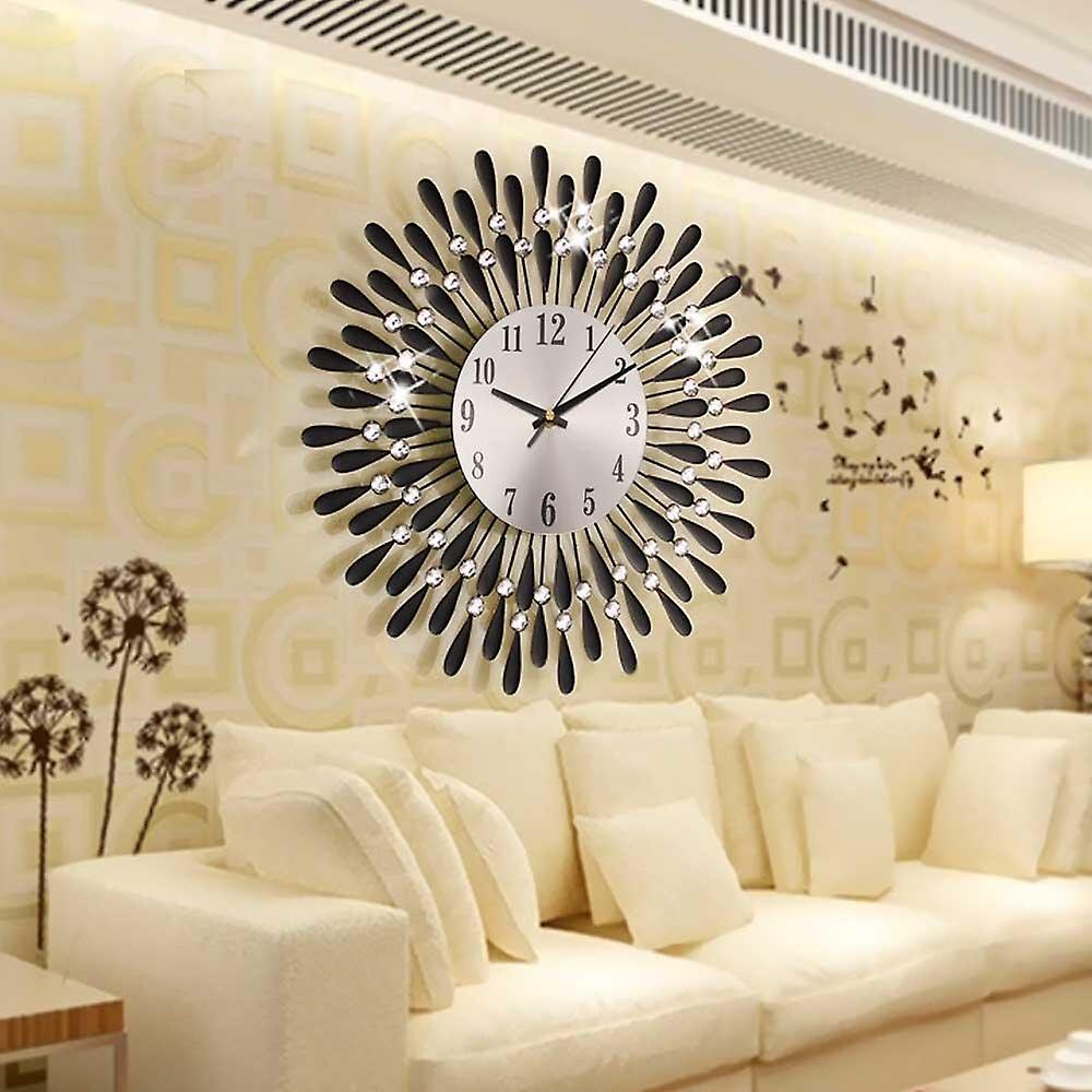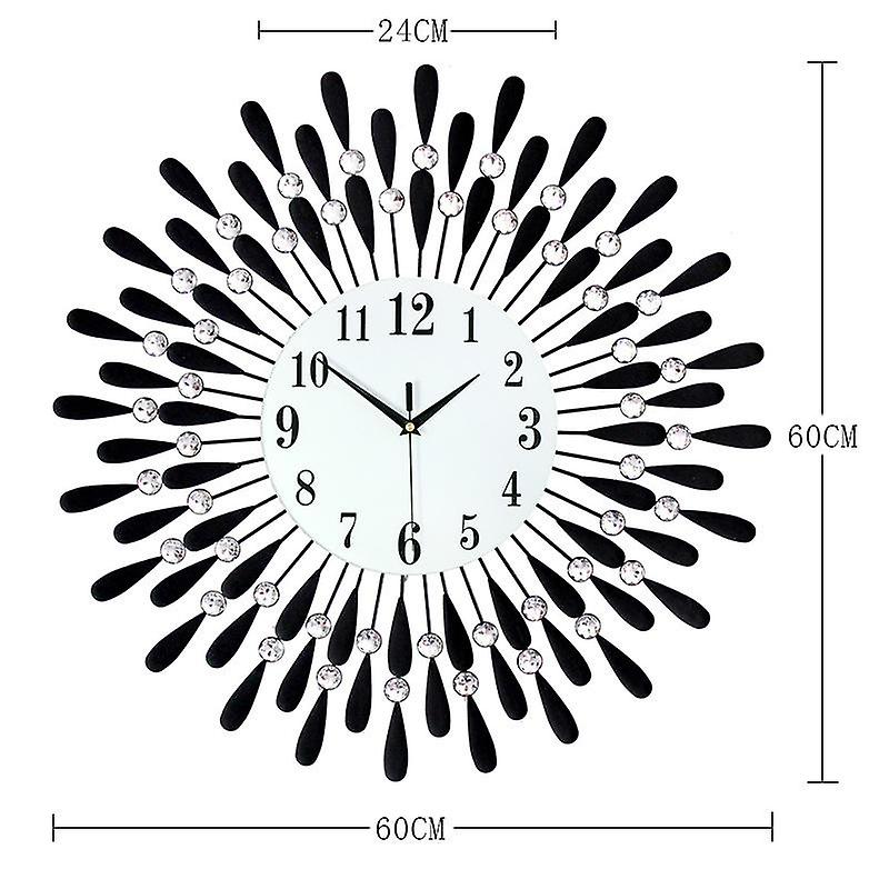 Specifications:Size: about 37.5cm in diameterMaterial: Iron art + glass + flash diamondColor: black, goldProcess: high temperature baking varnish, no fading, no deformationMovement: silent movementEra: 21st Century (2000-now)Type: Wall ClockFinish: BlackRoom: Any RoomFeatures: 12 Hour DisplayDisplay Type: AnalogueTheme: Sun Ray StylePower Source: Battery PoweredStyle: Retro StylePower Source:1x AA Battery powered(Battery is not included)Wall Mounted Display: Sunflower Wall ClockTheme:Sun Ray StyleGold Modernist Face:Sunflower Wall ClockOriginal/Reproduction:OriginalMid Century Furniture:Replacement Quartz MovementModification Description:New quartz movement and handsShape:RoundModel:NoClock Type:Wall ClockQuantity: 1 pcEra: ModernInclude:1x 38CM Large Wall Clock Arab Numerals Metal Indoor Big Round Open Face Garden UK