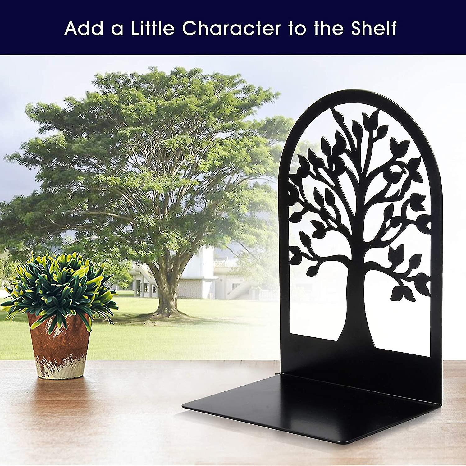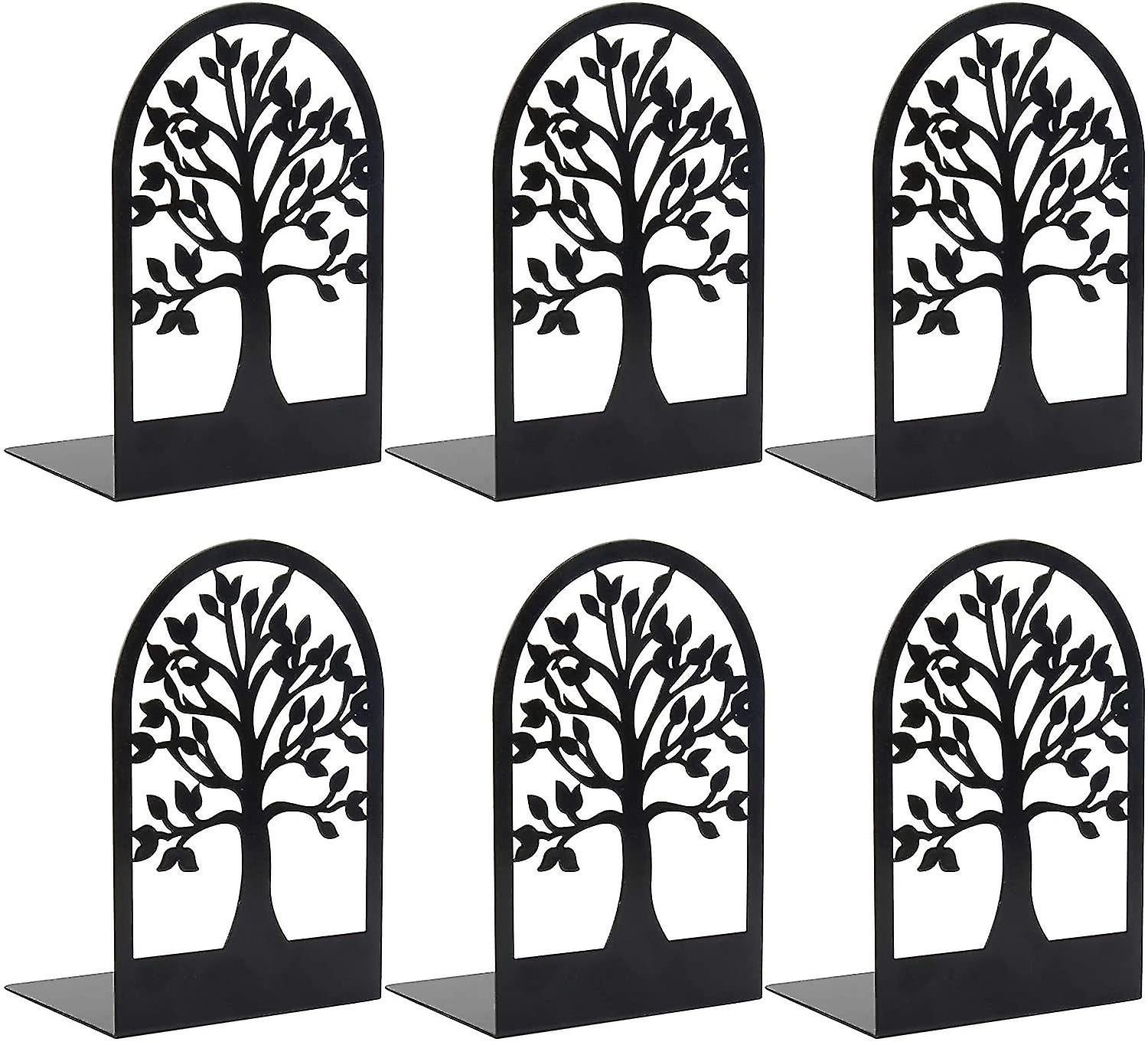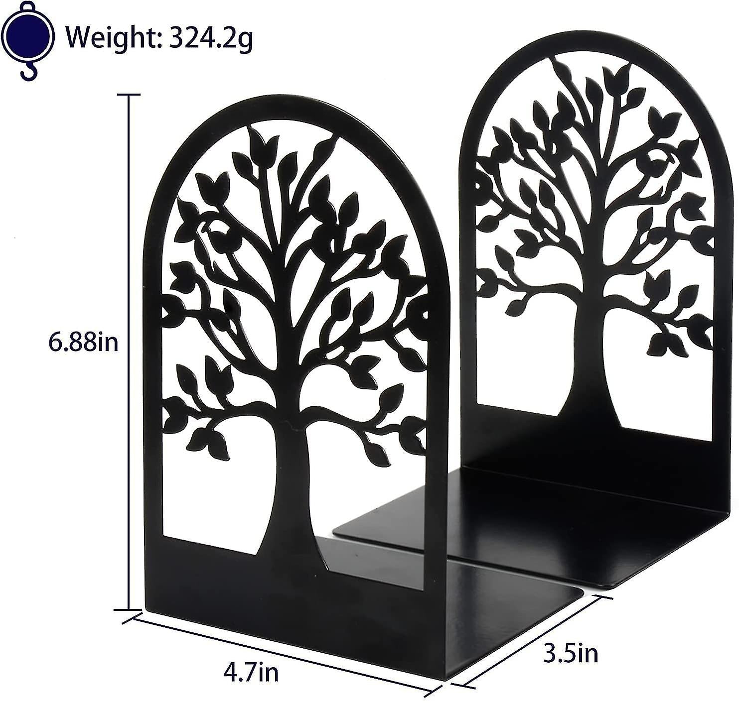 Value For The Money: The package comes in three pairs of Tree of Life, which will help you classify different booksDVDs,photo albumsvideo games and keep your shelf always tidyAdd A Little Character: With modern and minimal design, The decorative bookends add more character to the shelf, bring more fun without taking up any extra space, and look good for any decorSturdy Construction & Excellent Grip:: Book ends are laser cut from sheet steel, flat and smooth, sturdy enough to hold large books, the pads of metal bookends are great to keep the bottoms of the bookends from scratching the bookcase while moving the book endsExcellent Book Capacity: The bookends size is 6.88 x 3.5 x 4.7 inch, which length can be adjusted according to the number of books, even had around 20 different weight and size books plus some albums, it still not tip or slideHelp Them Stay Organized: metal bookends make the perfect thoughtful gift for avid readers, bookworms, students, or anyone who loves exquisite and vivid design Description du produit decorative bookends -- functional decor tool Dont be hurry when you need to find folders, books, magazines cookbooks, CDs, DVDs, albums, Get three modern metal bookends, which help you classify all books and keep your life easy Tree of life design, give you visual interest, add a little character to your shelf. more character, more fun These metal bookends are laser cut from sheet steel then powder coated for extra durability and finished in hammered black. Solid enough to hold large books Keep Life Secured True Satisfaction Guaranteed: With Anti-Static Paint Surface, Anti-Slip Pads, modern and minimal design, these are the bookends to get if youre looking for the ideal balance of Quality, decoration, and a Hassle-Free experience